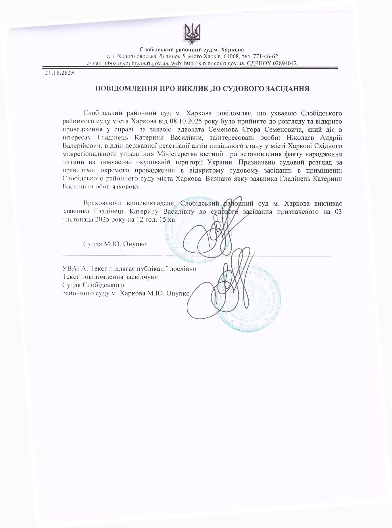 Оголошення про виклик до суду осіб зареєстроване місце проживання (перебування), місцезнаходження чи місце роботи якого невідоме