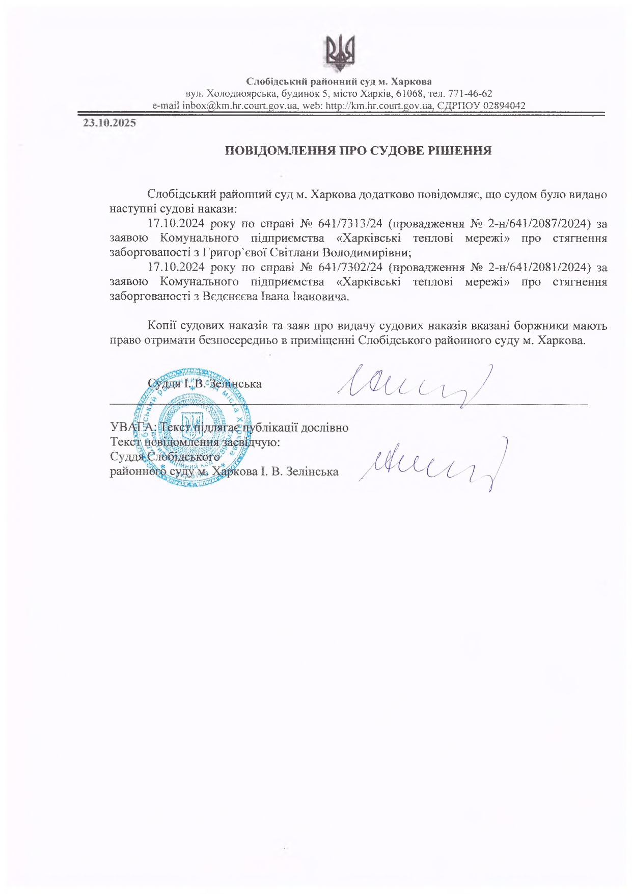 Увага, суд перейменовано з Комінтернівський районний суд м. Харкова
