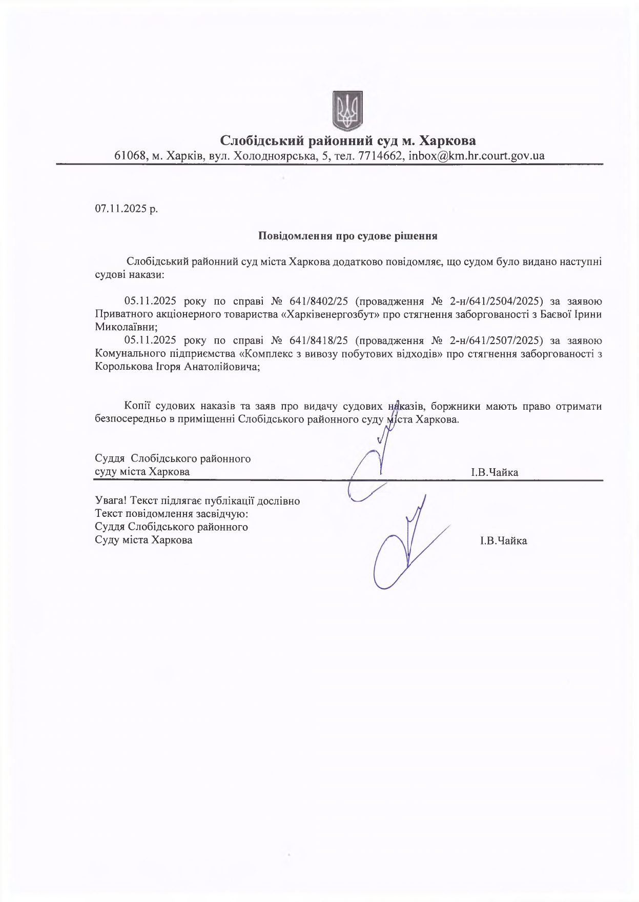 Увага, суд перейменовано з Комінтернівський районний суд м. Харкова