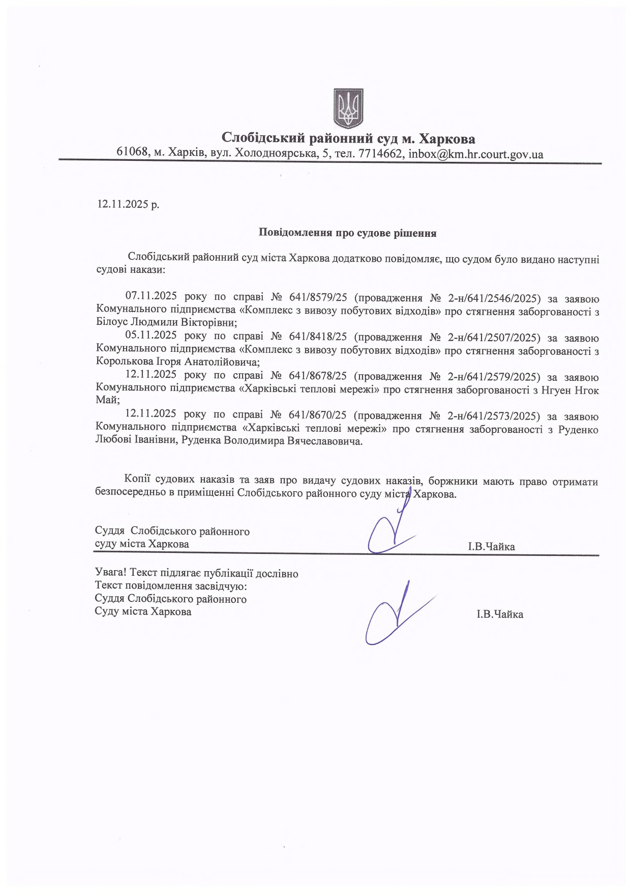 Увага, суд перейменовано з Комінтернівський районний суд м. Харкова