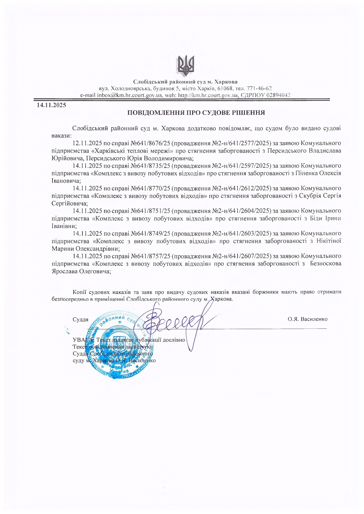 Увага, суд перейменовано з Комінтернівський районний суд м. Харкова