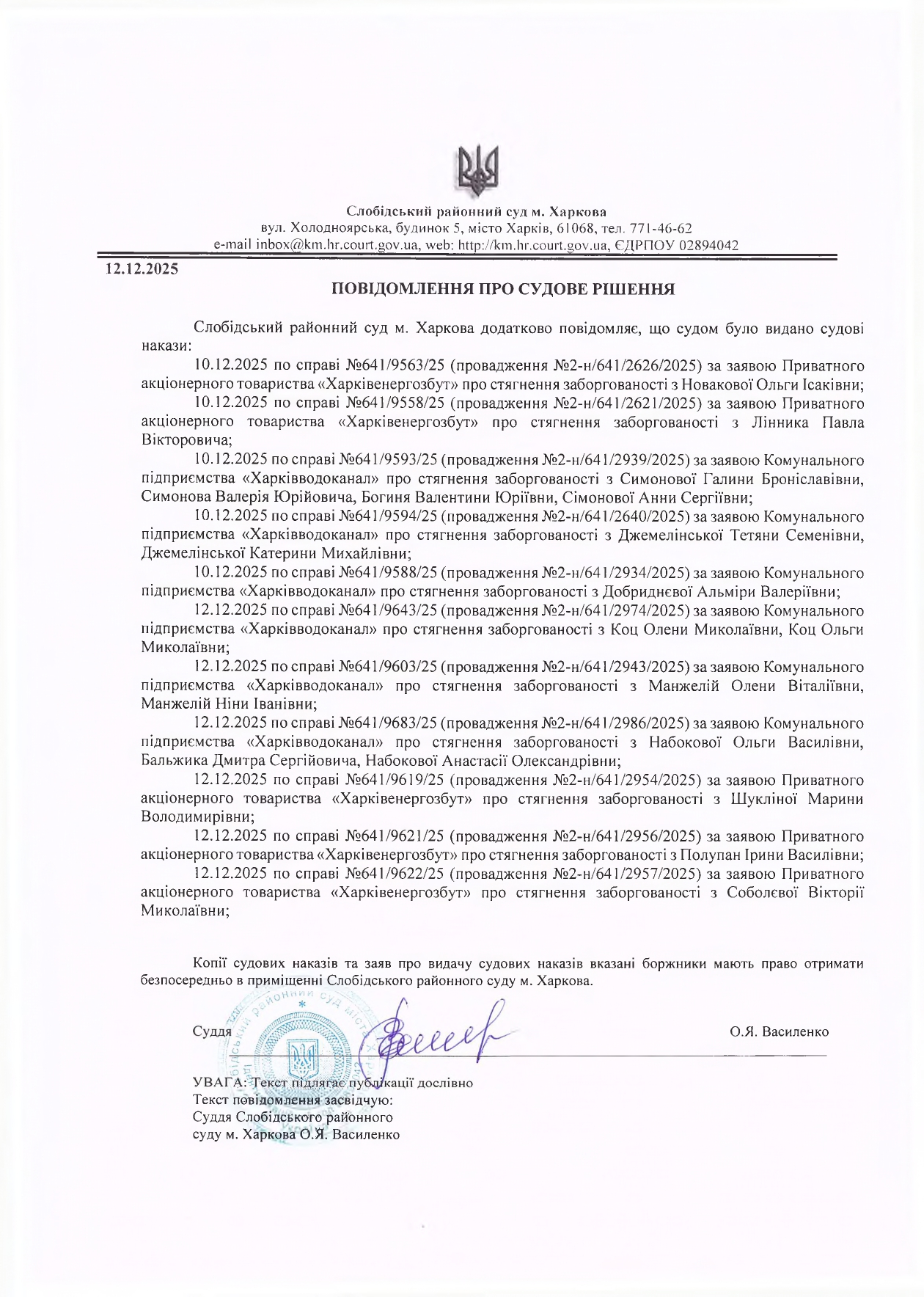Увага, суд перейменовано з Комінтернівський районний суд м. Харкова